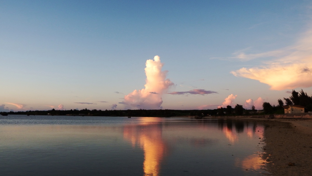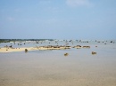 遠浅で波が少なく、水面がキレイに反射する時もあります。