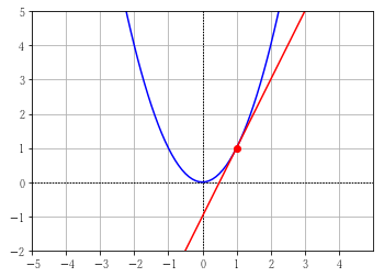 \( f(x) = x^2 \) が \( x = 1 \) の時の数値微分を行います。