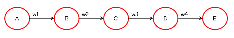 \( \dfrac{dE}{dw1} = \dfrac{dE}{dD} \dfrac{dD}{dC} \dfrac{dC}{dB} \dfrac{dB}{dw1} = w4 \cdot w3 \cdot w2 \cdot A \)