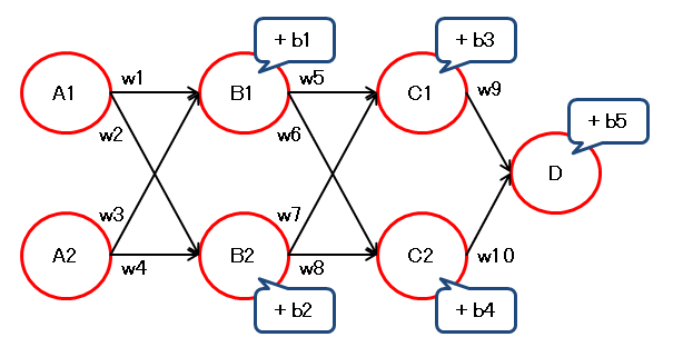 以下の構成を各重みで微分してみます。
