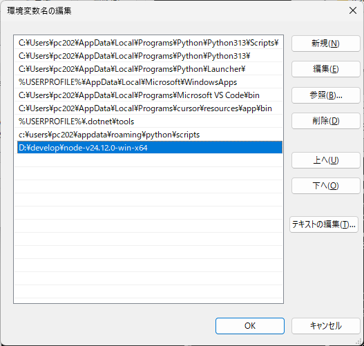 【注意】複数の Nodo.js を使用する場合は、バッチファイルで動的にパスを通したり、Volta(Volta で Node.js のバージョンの切り替え)などを使用してください。