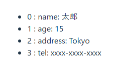 上記の場合、name、age、address、tel の4回ループします。